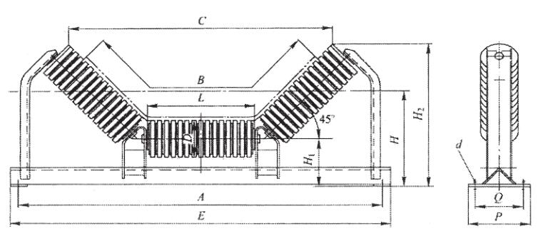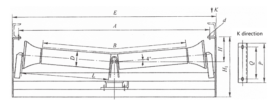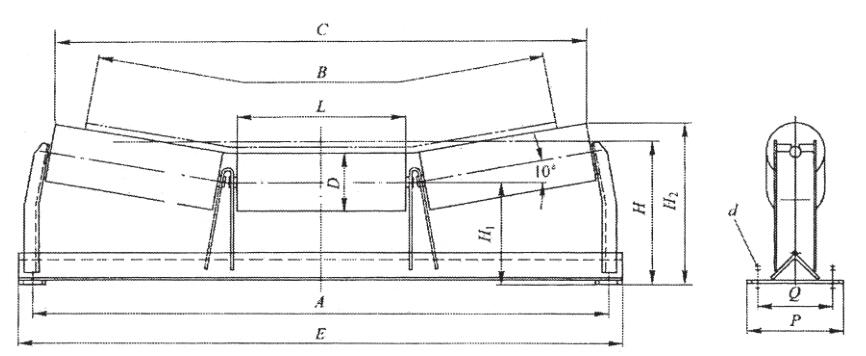 3.8 10°, ±5°transition idler with adjustable trough angle