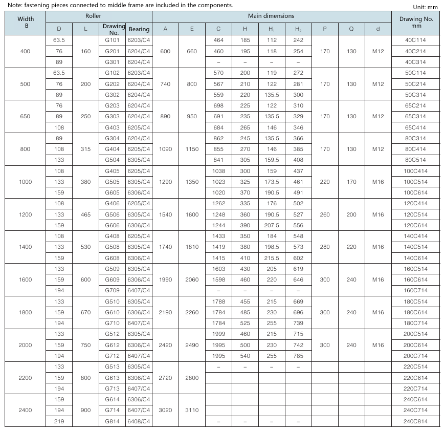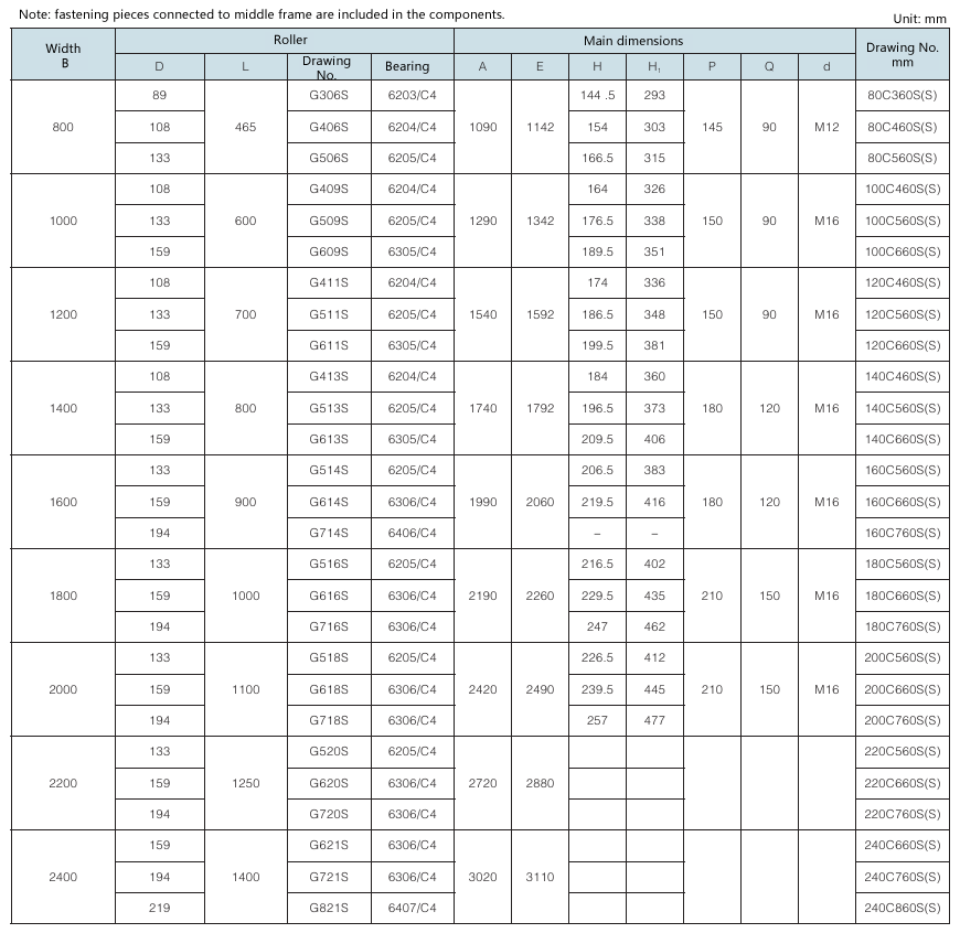 Requirement for drum surface: drawing No. with “G” as postfix refers to smooth face drum; drawing No. without “G” as postfix refers to rubber face drum.
