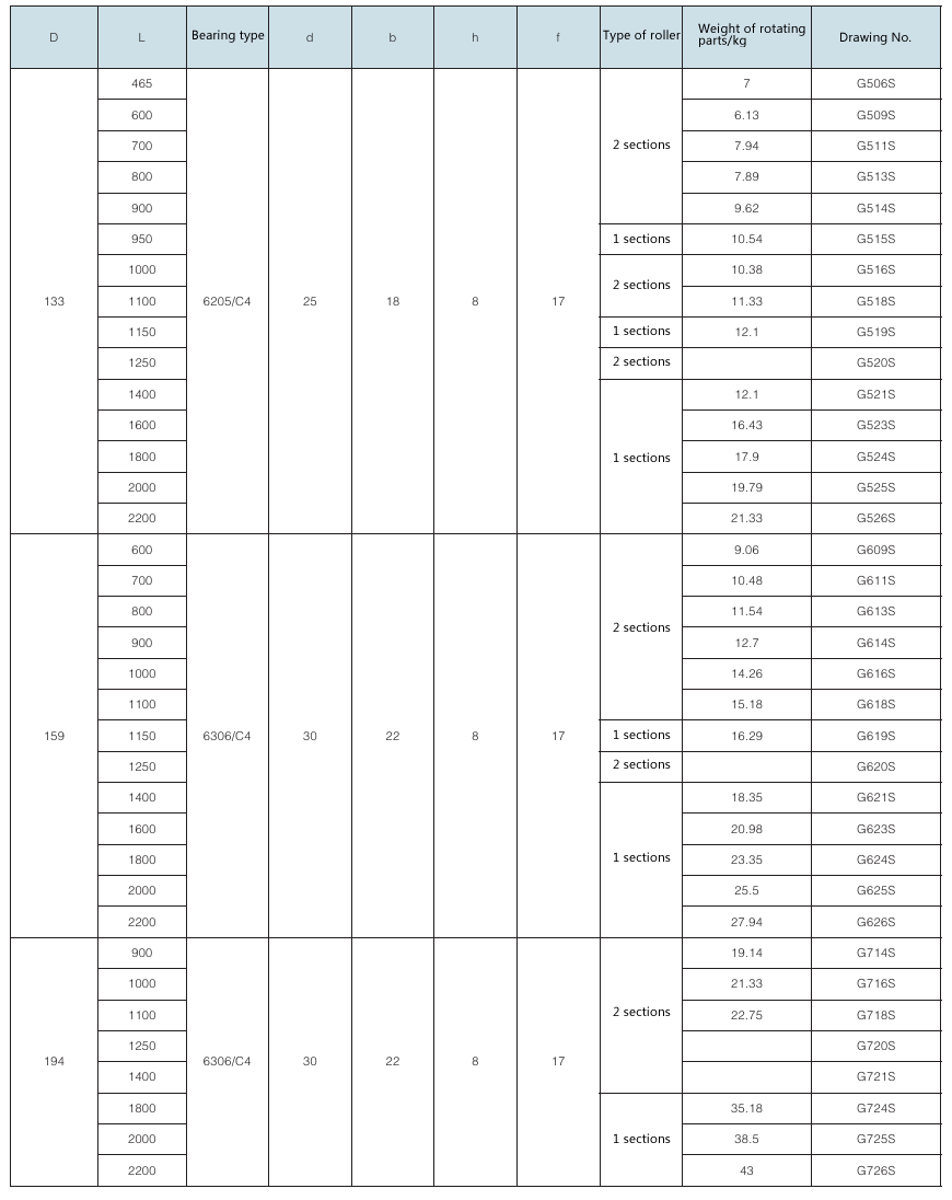 Requirement for drum surface: all are cast rubber surface. Drawing No. with “Y” as postfix refers to right-direction herringbone, with “Z” as postfix refers to left-direction herringbone, with “YZ” as postfix refers to diamond shape (omissible).